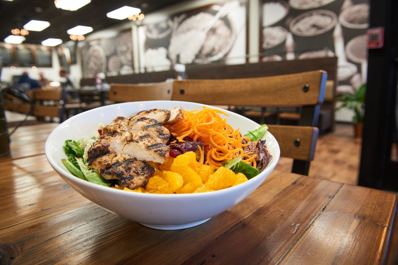 Chicken, Walnuts & Fruit - Grilled chicken breast over fresh greens with walnuts, mandarin oranges, granny smith apples, dried cranberries and apricots, cherry tomatoes, carrots, cucumber and your choice of dressing