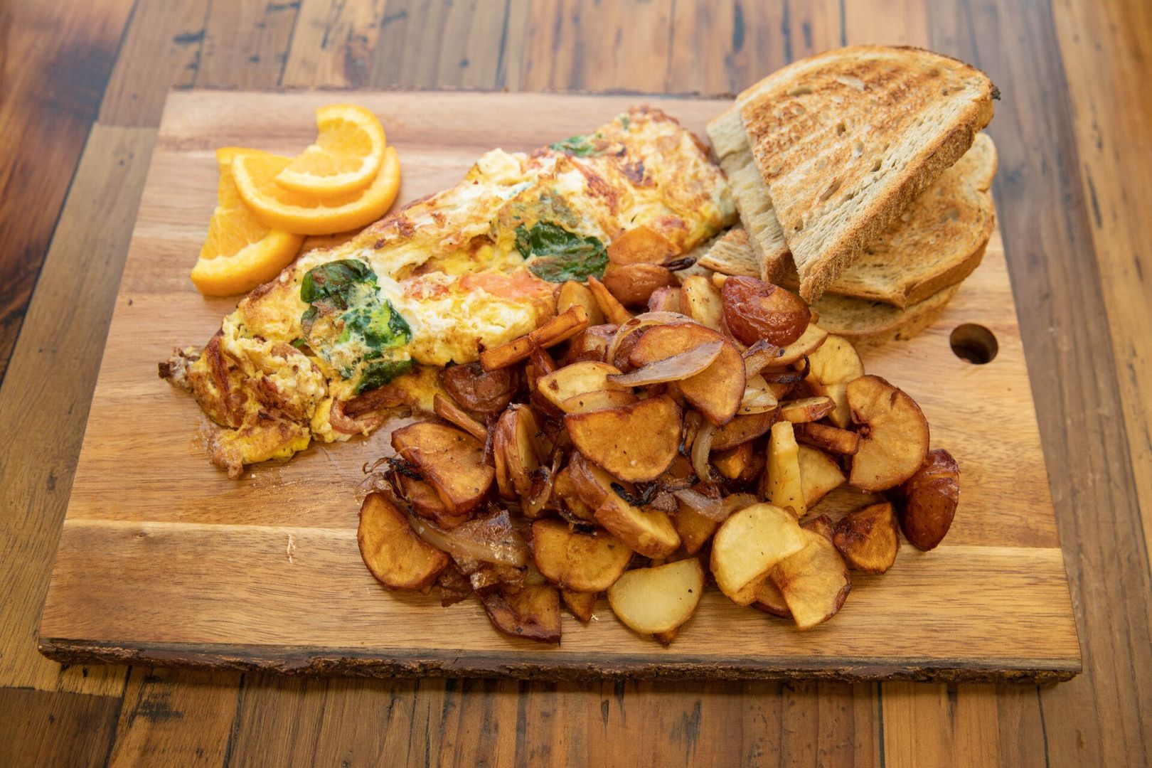Eggplant and Baby Spinach – Lightly breaded eggplant, fresh baby spinach, fresh mozzarella, roasted red peppers and balsamic reduction all wrapped in a soft tortilla and served with crispy fries