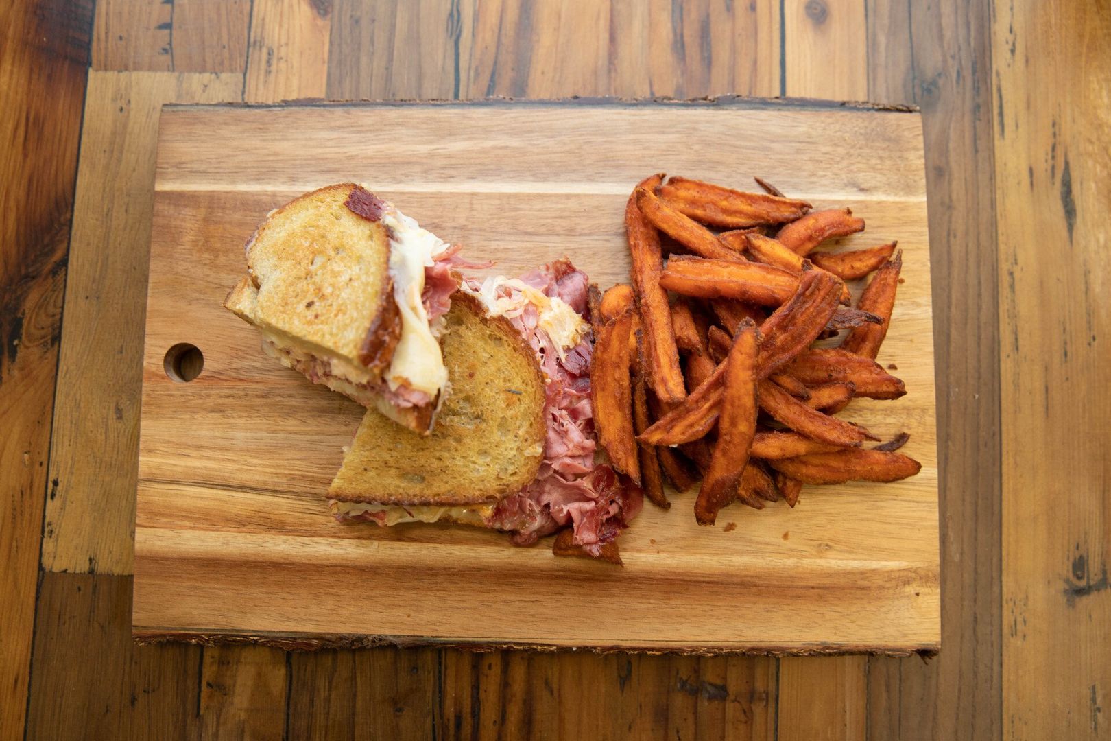 Grown Up Grilled Cheese - Swiss cheese, fig & bacon jam, and thinly sliced apple grilled between 2 pieces of Texas toast, served with crispy fries